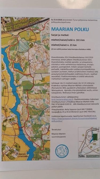 Turun pohjoisissa maisemissa järjestetään kaikkien aikojen ensimmäinen polkujuoksutapahtuma! Tervetuloa nauttimaan hyvästä tunnelmasta ja voittamaan itsesi! Tapahtuman järjestää Maarian Mahdin Suunnistusjaosto.